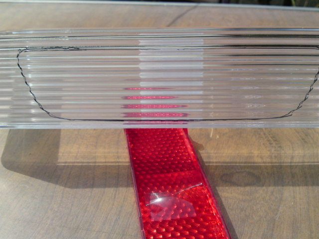 先日ハンダのやり直しをしたモビリオのハイマウントストップランプLEDバージョン(笑)ですが、純正の赤レンズを通すとどうしても暗くなってしまうのでレンズを自作しました。